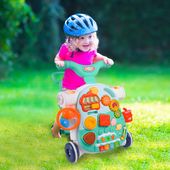 Uniwersalność tego produktu gwarantuje lata fascynującej zabawy. Transformer 5w1 - chodzik, jeździk, hulajnoga, stolik edukacyjny oraz tablica interaktywna. Wyjmowany panel edukacyjny z pianinkiem, świecącymi elementami oraz różnorodnymi akcesoriami (klocki sensoryczne, zębatki, muszelka) zapewnia stymulację zmysłów i rozwój koordynacji ręka-oko.