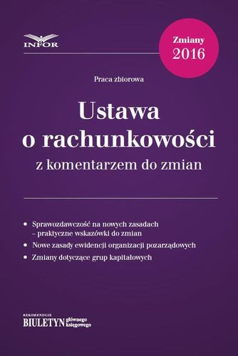 W 2016 roku wprowadzono szereg zmian w ustawie o rachunkowości, które mają kluczowe znaczenie dla sprawozdań finansowych. Nasza publikacja oferuje szeroki komentarz do tych nowelizacji, a także szczegółowe opisy skutków ich zastosowania. To nie tylko zbiór przepisów - to narzędzie, które pomoże ci w pełni zrozumieć nowe regulacje oraz ich praktyczne zastosowanie w działalności biznesowej.