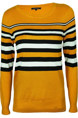 Sweter Peacocks w Miodowym Odcieniu z Czarno-Białymi Pasami to idealny wybór dla każdej kobiety, która pragnie połączyć styl z wygodą. Oferując subtelnie luksusowy wygląd, ten asymetryczny sweter z lekko dłuższym tyłem w harmonijnym połączeniu złotych i czarnych pasów stanowi doskonały element garderoby na każdą okazję.