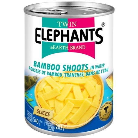 Pędy bambusa krojone w plasterki marki Twin Elephants w dużej puszce 540 g.