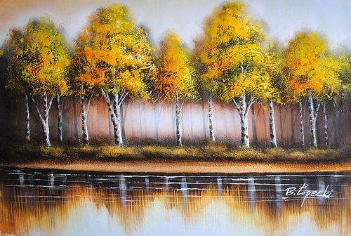Ręcznie malowany obraz olejny na płótnie za pomocą pędzla. Dostępny bez blejtramu. Sygnowany i werniksowany. Przedstawia pejzaż o współczesnej stylistyce i atrakcyjnych barwach. Bardzo przystępna cena!