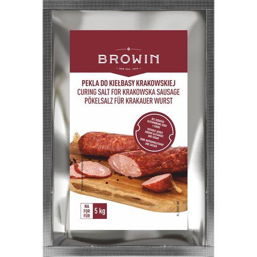 Peklowanie mięs przy użyciu naszej nowej pekli to czysta przyjemność. Łatwo i szybko przygotujesz wyśmienite parzone lub wędzone kiełbasy, wydobędziesz z nich wyjątkowy, tradycyjny smak. Nasza pekla sprawi również, że Twoje mięsne wyroby będą stabilne mikrobiologicznie. Zawarte w mieszance zioła m.in.: kolendra, pieprz biały, czosnek granulowany, ziele angielskie oraz kminek, zapewnią im dodatkowo doskonały i wyjątkowy aromat. Stosując peklosól do kiełbasy krakowskiej sprawisz, że Twoje mięso pozostanie apetycznie różowe, będzie kusić biesiadników atrakcyjnym wyglądem. Opakowanie 115 g wystarczy na przygotowanie aż 5 kg kiełbasy krakowskiej.