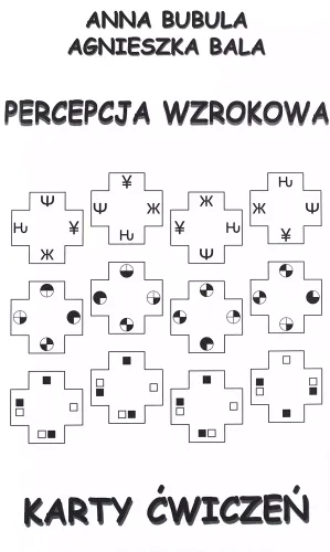 Dla kogo przeznaczona jest publikacja? Proponowany zestaw ćwiczeń przeznaczony jest dla dzieci prawidłowo rozwijających się, które chcą doskonalić umiejętności wzrokowe, a także dla dzieci i młodzieży z zaburzeniami percepcji wzrokowej. Ćwiczenia mogą być wykorzystane jako pomoc terapeutyczna w gabinetach logopedycznych, w przedszkolach i szkołach (na zajęciach reedukacyjnych bądź jako dodatkowe zadania dla dzieci zdolnych), a także w pracy z dzieckiem w domu. Dlaczego warto wykorzystywać zestaw Percepcja wzrokowa. Karty ćwiczeń? Zaburzenia pracy analizatora wzrokowego są przyczyną wielu trudności, które znacząco spowalniają proces uczenia się. Trudnościom tym należy zapobiegać, a jeśli się pojawią – starać się je zmniejszyć. Zestaw Percepcja wzrokowa. Karty ćwiczeń służy kształceniu sprawności wzrokowych. Proponowane zadania doskonalą ważne funkcje warunkujące m.in. naukę czytania, pisania, wykonywanie zadań matematycznych oraz rozwinięcie innych umiejętności wymaganych w trakcie nauki szkolnej. Ćwiczenia usprawniają: – spostrzeganie i różnicowanie elementów, – dokonywanie analizy i syntezy obrazów, – pamięć wzrokową, – logiczne myślenie, – orientację przestrzenną, – koncentrację uwagi. Co zawiera zestaw Percepcja wzrokowa. Karty ćwiczeń? Zestaw w teczce zawiera 12 atematycznych elementów wzorcowych, do których zostało ułożonych 80 zadań o zróżnicowanej formie i poziomie trudności, co umożliwia wszechstronną stymulację percepcji wzrokowej na różnych poziomach terapii. Jak korzystać z publikacji? Każda karta ćwiczeń w zestawie zawiera jasno sformułowane polecenie. Wszystkie ćwiczenia skonstruowane są na podstawie 12 atematycznych elementów wzorcowych, dołączonych do pomocy. Na każdym elemencie wzorcowym umieszczone są symbole graficzne (trzy różne typy). Manipulując elementami poprzez obracanie bądź odwracanie, przekształcamy wygląd wykorzystanych symboli. Zamieszczone w publikacji zadania polegają na identyfikowaniu, przekształcaniu i różnicowaniu owych symboli.
