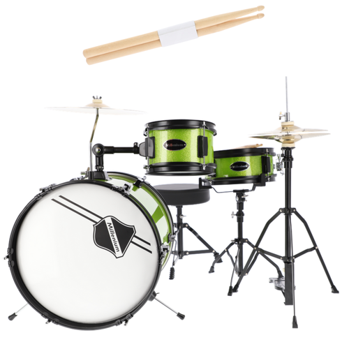 Millenium Youngster Drum Set to kompletny zestaw perkusyjny idealny dla młodych adeptów muzyki już od 3. roku życia. Wykonany z solidnego drewna z wytrzymałym foliowym wykończeniem, przyciąga wzrok i inspiruje do gry. Zestaw wyposażony jest w czarny hardware oraz wszystko, czego potrzebuje przyszły perkusista, w tym bęben basowy 16"x12", tom tom 8"x5", werbel 10"x4", talerze LowNoiz oraz podstawowe akcesoria jak stołek, stopa, statywy i pałeczki. Talerze LowNoiz charakteryzują się niskim natężeniem dźwięku oraz szybkim wybrzmieniem, co czyni je idealnym wyborem do domowego ćwiczenia.