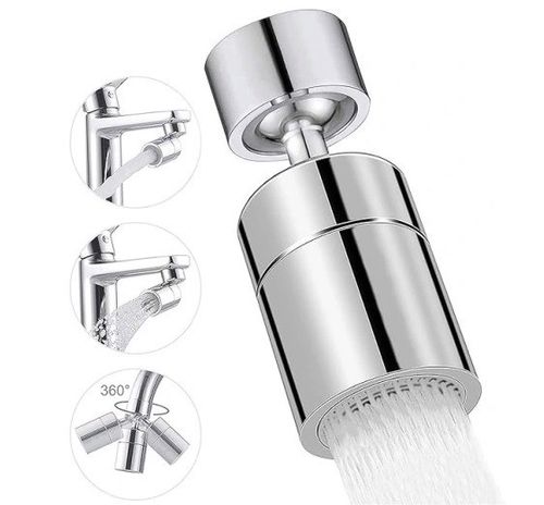 Oszczędzacz wody kranowej ma dwa rodzaje przepływu wody: miękki strumień bąbelkowy i silny strumień, który można obracać w razie potrzeby. Kontroler strumienia kranu można obracać o 360° i przechylać o 45°, aby łatwo pokryć cały zlew kuchenny.
