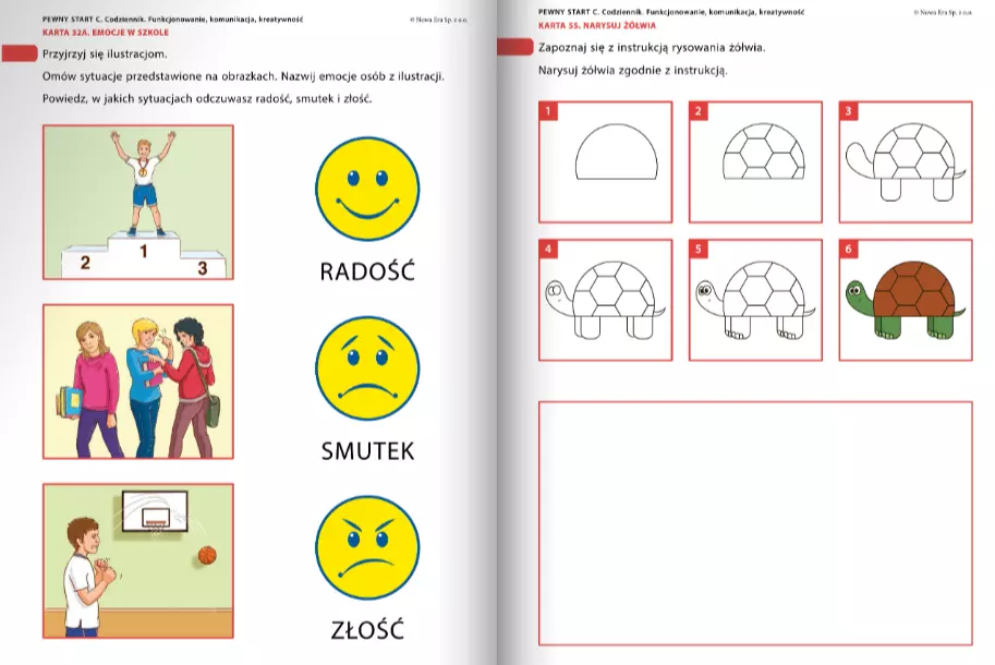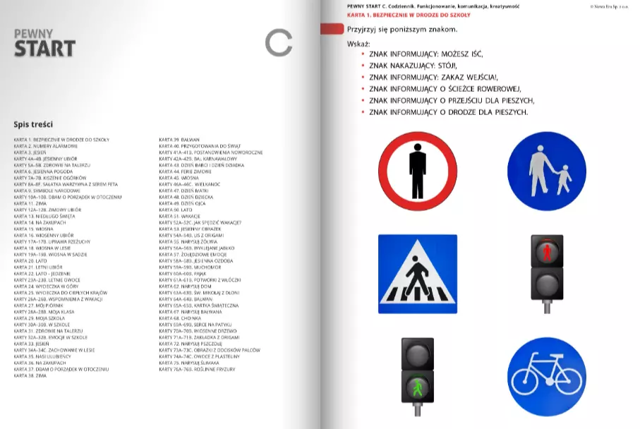 Publikacja Pewny start. Poziom C. Codziennik. Funkcjonowanie, komunikacja, kreatywność to 120 bogato ilustrowanych kart do ćwiczeń manipulacyjnych wspierających rozwój psychospołeczny, rozwijających kompetencje komunikacyjne, emocjonalno-społeczne i zdolności twórcze. Zakres tematyczny obejmuje m.in. następujące tematy: • Życie codzienne: szkoła, dom, zakupy, • Pory roku, zmiany w przyrodzie, pogoda, • Dbanie o siebie: ubiór, zdrowe odżywianie, higiena, • Przygotowanie prostych potraw według instrukcji, • Bezpieczeństwo i zasady społeczne, • Podróże, środki transportu, odczytywanie symboli, • Tradycje, wydarzenia i uroczystości. Celem publikacji jest: poszerzanie wiedzy o świecie, rozwój poznawczy, społeczny i językowy oraz wspieranie kreatywności. Treści pomagają uczniom w pełnym wykorzystaniu ich potencjału i przygotowaniu do życia.