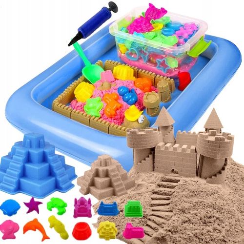 Ten kompletny zestaw zawiera wszystko, czego potrzeba do niezapomnianej zabawy: dmuchaną piaskownicę z wytrzymałego PCV, 3 kg piasku kinetycznego, foremki, łopatkę, patyczki do formowania i pompkę do nadmuchiwania basenu. Więcej akcesoriów niż u konkurencji!