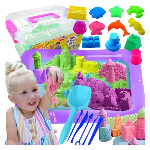 ✔️Kompletny zestaw XXL zawierający 3kg miękkiego piasku kinetycznego oraz 15 elementów akcesoriów do pełnej zabawy kreatywnej.