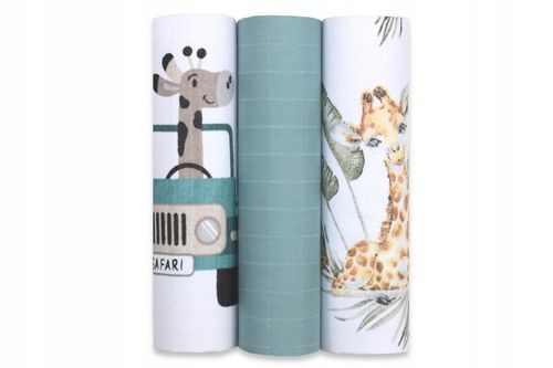 Komplet przewiewnych pieluszek muślinowych. W skład kompletu wchodzą 3 pieluszki muślinowe- dwie we wzorki i jedna kolorowa. Muślin charakteryzuje się lekkością i wyjątkową miękkością, której nabiera z każdym praniem, a dzięki tym właściwościom idealnie sprawdza się już od pierwszych dni życia. Są to pieluszki wielokrotnego użytku, można je prać wiele razy, bez obaw, że stracą swe doskonałe właściwości chłonne, zmechacą się czy odbarwią. Higieniczne i trwałe, bardzo funkcjonalne, idealnie się sprawdzą w niemowlęcej wyprawce.