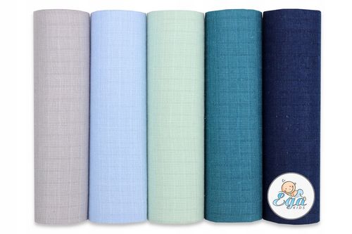 W skład zestawu wchodzi 5 pieluszek w pięknej kolorystyce, spakowane w opakowanie foliowe z eurodziurką.