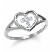PIERŚCIONEK KRZYŻYK W SERCU Z CYRKONIAMI ZE SREBRA PR. 925 P/S/183