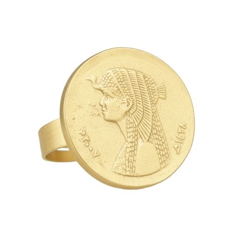 Pozłacany, regulowany pierścionek z monetką. Średnica monetki ok.2,2cm