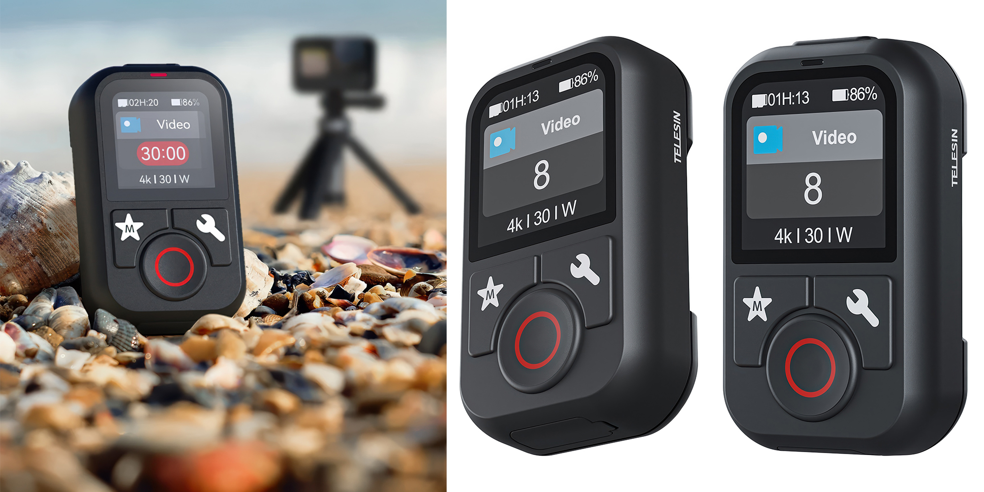 Pilot Telesin S5-RMT-01-TGP do kamer GoPro Hero (modele 8–13 i Max) to niezawodne narzędzie dla twórców, którzy chcą zdalnie sterować urządzeniem. Technologia Bluetooth działa nawet z odległości 80 metrów. Kolorowy ekran o przekątnej 1,4” umożliwia szybką zmianę trybu, podgląd statusu i czasu nagrania. Pilot pozwala sterować aż pięcioma kamerami jednocześnie. Wodoodporna obudowa i wygodny pasek nadgarstkowy zapewniają jeszcze lepszy komfort pracy w terenie. Jedno ładowanie wystarczy na 8 godzin nieprzerwanego użytkowania. To idealny towarzysz vlogów, aktywności sportowych i ujęć z dystansu.
