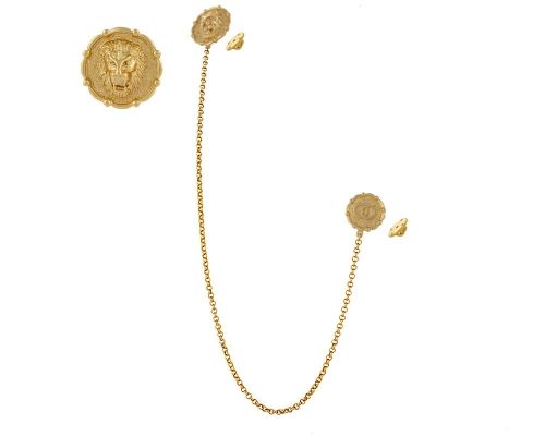 Pozłacana ozdoba składająca się z dwóch pinów, połączonych ze sobą łańcuszkiem typu rolo.