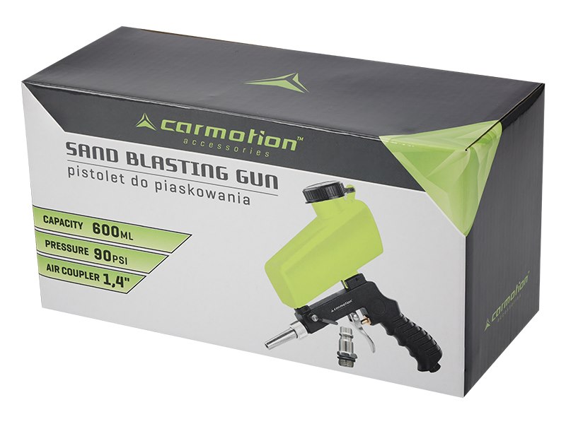 Prosty w obsłudze pistolet do piaskowania, idealnie sprawdza się przy zdzieraniu farby, usuwaniu rdzy i innych pracach czyszczących. Umiejscowienie zbiornika na ścierniwo na górze urządzenia gwarantuje mniejsze zapotrzebowanie na powietrze, dzięki czemu do zasilania wystarczy mały kompresor.