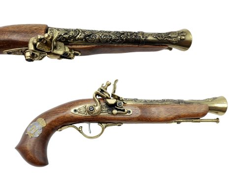 Zapraszamy do odkrycia realistycznej repliki francuskiego pistoletu, która z pewnością zachwyci każdego entuzjastę militariów. Ten wyjątkowy produkt o długości 37 cm to idealne uzupełnienie każdej kolekcji antycznych artefaktów, łącząc w sobie oryginalny design oraz dbałość o najdrobniejsze detale. Stworzyliśmy ten produkt z myślą o tych, którzy pragną posiadać nie tylko przedmiot, ale także kawałek historii wojskowości.