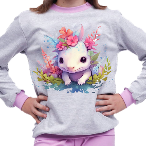 Odkryj piżamę dziecięcą Axolotl - idealny wybór dla Twojego dziecka! Ta wyjątkowa, bawełniana piżama z długim rękawem dostępna jest zarówno dla chłopców, jak i dziewczynek, dając możliwość wyboru idealnego rozmiaru (104-164), co sprawia, że pasuje do dzieci w wieku od 3 do 15 lat.
