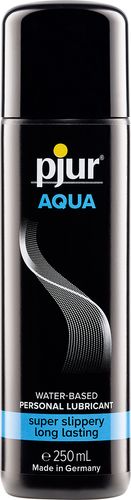 „Pjur AQUA to lubrykant przeznaczony do użycia podczas klasycznego stosunku. Jego ochronna dla skóry formuła dba o Twoje zdrowie. Świetnie sprawdza się także do użycia z zabawkami – w końcu jego formuła jest oparta na wodzie!”