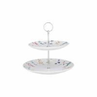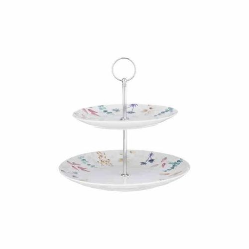 Przyciągająca wzrok dwupoziomowa patera Meadow jest idealna do organizowania spotkań w dobrym stylu! Dzięki dwóm poziomom patera jest idealnym wyborem do serwowania wszelkiego rodzaju smakołyków. Niezależnie od tego, czy chodzi o ciasta i desery, czy o kanapki i słone przekąski, ten dwupoziomowy półmisek poradzi sobie ze wszystkim — a przy tym będzie świetnie wyglądał. Dzięki eleganckiemu ręcznie malowanemu motywowi kwiatowemu, ożywionemu dzięki wykończeniu z glazurowanej porcelany, ten dekoracyjny element z pewnością stanie się centralnym punktem Twojego stołu w jadalni.