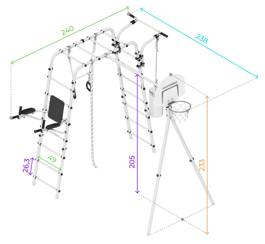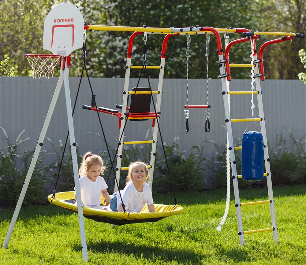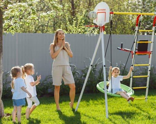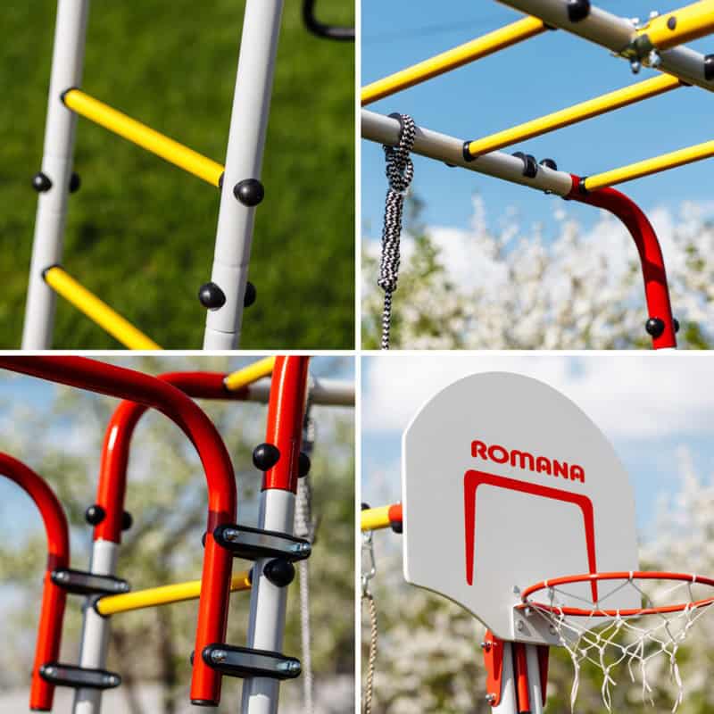 Wspólne rodzinne zabawy i ćwiczenia gimnastyczne na działce wzmacniają relacje między rodzeństwem, uczą ufać i dzielić się, zachęcają do współzawodnictwa, dają możliwość rodzicowi służyć dobrym przykładem dla dzieci. Plac zabaw ogrodowy dla dzieci posiada drabinkę poziomą. Ona służy do przechodzenia wisząc na rękach, a to nie lada wyzwanie i sprawdzian wytrzymałości. Biała lina gimnastyczna pomoże wzmocnić mięśnie i polepszyć motorykę. Również są kółka z trapezem do przewrotów oraz kosz do gry w koszykówkę — i mamy wszystkie ulubione aktywności naszych dzieciaków, które zostały zebrane w jednym miejscu.