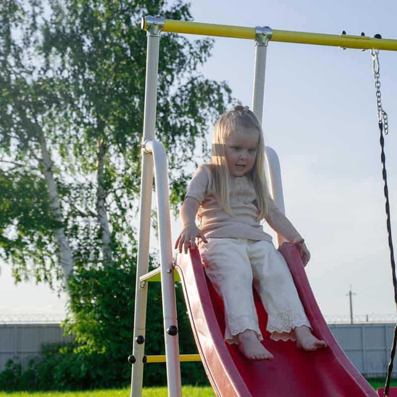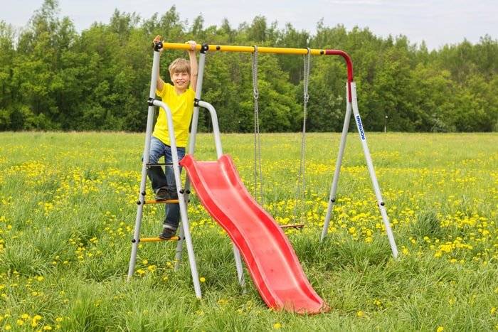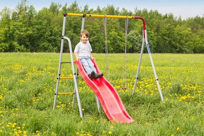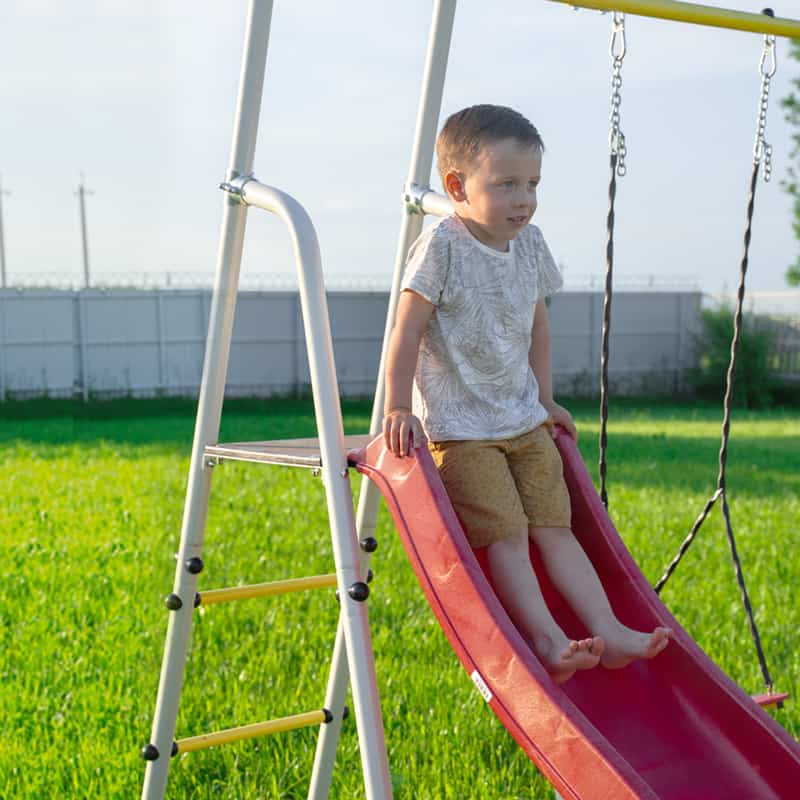 Plac zabaw do ogrodu Lato to huśtawka i zjeżdżalnia tworzące konstrukcję zestawu, które pozwalają dzieciom na aktywności i różne, urozmaicone pomysły na zabawę. Odpowiednio zaprojektowane i wyprofilowane elementy tego ogrodowego placu zabaw pomogą dziecku ćwiczyć sprawność fizyczną i koordynację ruchową, a obecna w zestawie huśtawka ogrodowa będzie idealnym miejscem na chwilę odpoczynku czy zabawy dla maluchów. Plac zabaw do ogrodu Lato zamieni Twój ogród w miejsce niezapomnianych zabaw i nieskończonej radości. Konstrukcja metalowa ogrodowego placu zabaw dla dzieci Lato jest przygotowana również do łatwego montażu dodatkowych akcesoriów sportowych, co wzbogaca i urozmaica zabawę, a także pozwala dostosowywać ogrodowy plac zabaw z czasem do wieku i upodobań dziecka.