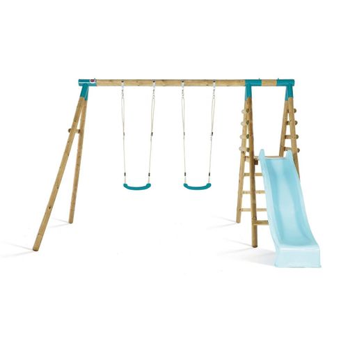 Nowoczesna zjeżdżalnia w kolorze morskim nie tylko przyciąga uwagę, ale także dodaje świeżości do każdej przestrzeni ogrodowej. Hustawki o super szerokich siedziskach zapewnią Twojemu dziecku wyjątkowy komfort podczas zabawy, a wbudowana drabinka umożliwi łatwy dostęp do zjeżdżalni. Co więcej, zjeżdżalnia może być również przekształcona w zjeżdżalnię wodną, co zapewni dodatkową frajdę w upalne dni!