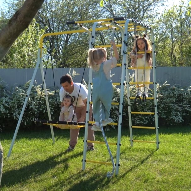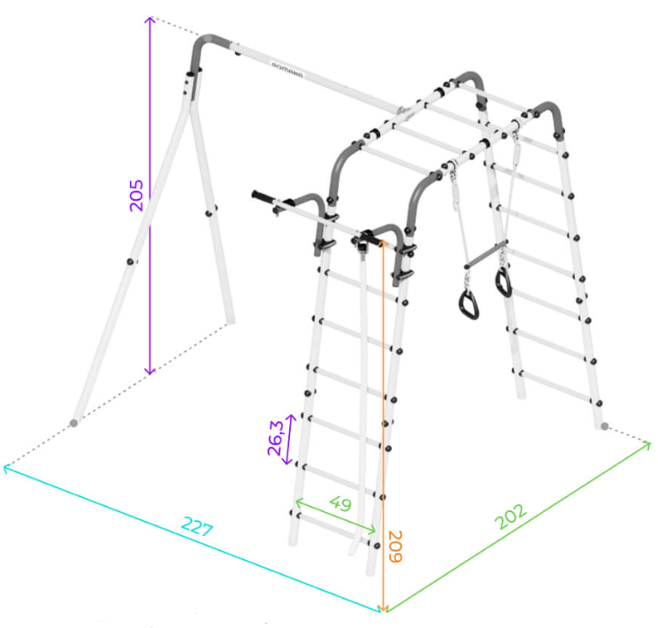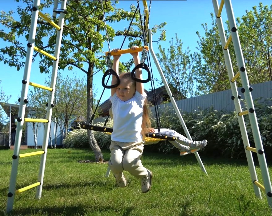 Plac zabaw do ogrodu Wesoła Łąka – wielofunkcyjny metalowy plac zabaw dla dzieci do ogrodu, który idealnie nadaje się do montażu w przydomowym ogrodzie lub na innym zielonym terytorium. Zestaw posiada wyposażenie rekreacyjno-gimnastyczne, które posłuży Twojemu dziecku zarówno do zabawy, jak i do ćwiczeń fizycznych. Ten ogrodowy plac zabaw zawiera m.in. drążek do ćwiczeń z możliwością regulacji wysokości, drabinkę poziomą, linę gimnastyczną czy kółka gimnastyczne z trapezem. Wszystkie te elementy idealnie nadają się do wykonywania ćwiczeń gimnastycznych. Tym samym plac zabaw będzie miejscem nie tylko wspaniałej zabawy, ale też zamieni się w znakomite miejsce do ćwiczeń.