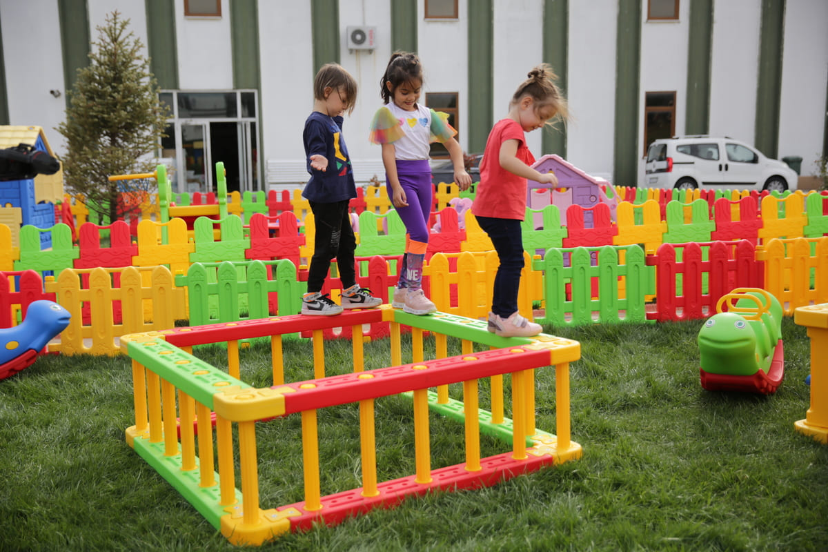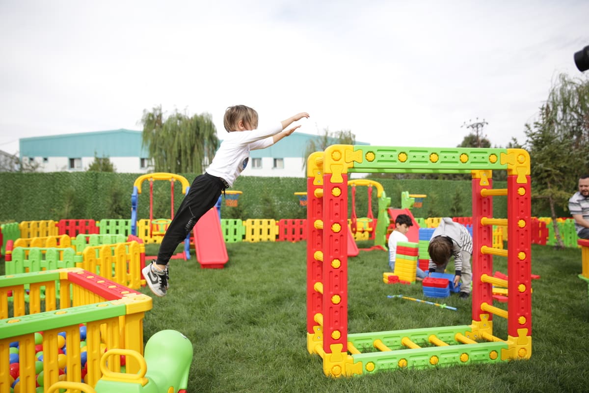Dzieci mogą ćwiczyć równowagę i koordynację ruchową, przechodząc po kolorowych konstrukcjach, co wspiera ich rozwój motoryczny i zdolności fizyczne. Plac zabaw może być wykorzystywany w przedszkolach, żłobkach, na placach zabaw, a także w przydomowych ogrodach. Modułowy charakter zestawu pozwala na łatwe dopasowanie do przestrzeni i zmiany układu w zależności od potrzeb.