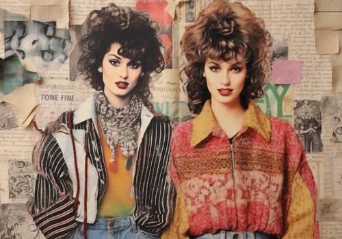 Plakat z serii pop art zatytułowany Ikony Stylu'80. Na tym nostalgicznie inspirowanym dziele sztuki widzimy dwie kobiety ubrane w odzież z lat 80., z charakterystycznymi, bujnymi fryzurami i wyrazistym makijażem. Ich postacie zostały umieszczone na tle kolażu z epoki, wypełnionego fragmentami starych gazet, ręcznych pism i ilustracji, co dodaje kontekstu historycznego i kulturowego. Silne kontrasty kolorystyczne i wyraźne linie twarzy podkreślają wyrazisty charakter obu postaci. Ten plakat to hołd dla mody i kultury lat 80., idealny dla przestrzeni, które pragną dodać retroflairu i odzwierciedlić ducha minionych dekad.