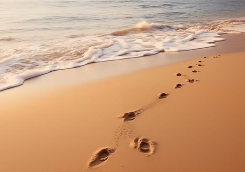 Plakat z serii pejzaże zatytułowany Szepty Fal przedstawia obraz, który zaprasza widza do kontemplacji i refleksji. Delikatne ślady stóp wskazują na cichą obecność, a przytłumione szumy fal i miękki piasek podkreślają uczucie spokoju. Rozmyte kolory zachodu słońca, które malują niebo na niemal nierzeczywiste odcienie pomarańczy i błękitu, wydają się być synonimem spokojnego zakończenia dnia. Ta praca idealnie wkomponuje się w estetykę współczesnych salonów lub pokoi wypoczynkowych, które cenią sobie minimalizm i naturę, a także będzie znakomitym wyborem dla przestrzeni wellness i spa, gdzie harmonia i spokój są kluczowymi elementami.