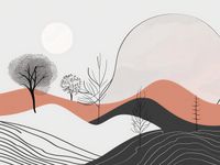 Plakat z serii boho zatytułowany Półcień Widoku.Plakat przedstawia oniryczny pejzaż, gdzie delikatne linie drzew przenikają przez łagodne, faliste wzgórza. Ciepłe odcienie czerwieni i różu przeplatają się z chłodniejszymi szarościami i czernią, tworząc poczucie głębi i spokoju. Subtelna tekstura na niektórych elementach dodaje wrażenia ruchu, a biała sfera w tle przywołuje skojarzenia z pełnią księżyca lub wschodzącym słońcem. Dzieło idealnie wpasuje się w wnętrza o spokojnym charakterze, takie jak stylowe sypialnie, czytelnie lub pokoje relaksacyjne. Może również przynieść element ukojenia i inspiracji do przestrzeni współpracujących, zapewniając wizualną odskocznię od codzienności. Zapewni miękki kontrast we wnętrzach urządzonych w naturalnych materiałach i odcieniach.