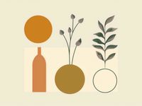 Plakat z serii boho zatytułowany Symfonia Równowagi. Plakat łączy organiczne kształty roślin z rygorystyczną formą geometrii. Prezentuje on wazony w spokojnych odcieniach brązu i złota, z których jeden jest ozdobiony gałązkami z delikatnymi pąkami, a drugi pokazuje symetryczny wzór liści. Proste linie i figury geometryczne, takie jak okrąg i prostokąt, tworzą tło dla roślinności, przypominając o ludzkiej próbie ujarzmienia natury. Całość osadzona na pastelowym tle wywołuje uczucie spokoju i harmonii. To dzieło będzie pasowało do przestrzeni, które cenią równowagę między naturą a stworzonym przez człowieka porządkiem, jak eleganckie gabinety, przestrzenie wellness lub strefy odpoczynku, które dążą do stworzenia oazy spokoju w zabieganym świecie.