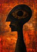 Plakat z serii abstrakcja zatytułowany Głęboki Wgląd przedstawia enigmatyczną sylwetkę o ludzkiej formie z dominującym, przeskalowanym okiem w miejscu głowy, wpatrującym się w widza z niezwykłą intensywnością. Tło plakatu jest abstrakcyjne, z bogatymi pociągnięciami pędzla w ciepłych odcieniach czerwieni i pomarańczy, sugerujące płomienne otoczenie lub burzliwe emocje. Sylwetka postaci jest zarysowana w głębokim czernią, co kontrastuje z jaskrawym tłem, a tekstura przypominająca sieć w obrębie oka może symbolizować skomplikowaną sieć ludzkich doświadczeń i percepcji. Dzieło to może wywoływać rozważania na temat ludzkiej świadomości i głębszego znaczenia bycia obserwatorem. Ten plakat będzie pasował do przestrzeni, które cenią głęboką myśl i filozoficzne dyskusje, takich jak biblioteki, studia artystyczne lub prywatne gabinety.