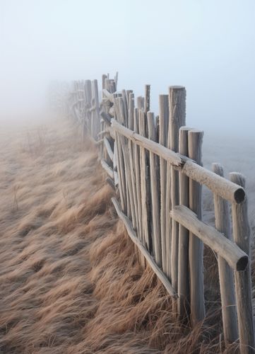 Plakat z serii pejzaże zatytułowany Mgła nad Wydmami. Prezentuje on eteryczny widok na drewniane ogrodzenie, które wiedzie przez poszarpane, suchą trawę wydm. Delikatna mgła otula scenę, nadając jej tajemniczość i spokój, a subtelne odcienie szarości i beżu tworzą uczucie miękkości i ciepła. Ten plakat idealnie oddaje atmosferę wyciszenia i rozmyślania, sprawiając, że jest doskonałym wyborem dla przestrzeni, które mają na celu uspokojenie i relaks, jak spa, pokoje medytacyjne, czy ciche kąciki w domach. To także piękny element dekoracyjny dla wnętrz inspirowanych naturą i spokojem przyrody.