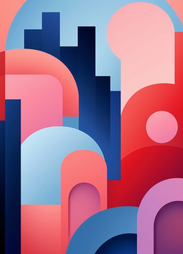Plakat z serii geometria zatytułowany Miasto Kolorów. Złożone z różnorodnych kształtów i tonacji, przedstawiające wyimaginowane miasto pełne zakamarków i mostów. Błękitne wieżowce kontrastują z ciepłymi różami i czerwieniami, tworząc uczucie ruchu i dynamiki. Gładkie linie i łuki wprowadzają uczucie spokoju w środku urbanistycznego zgiełku. Doskonale odnajdzie się w nowoczesnych biurach oraz w przestrzeniach artystycznych galerii.