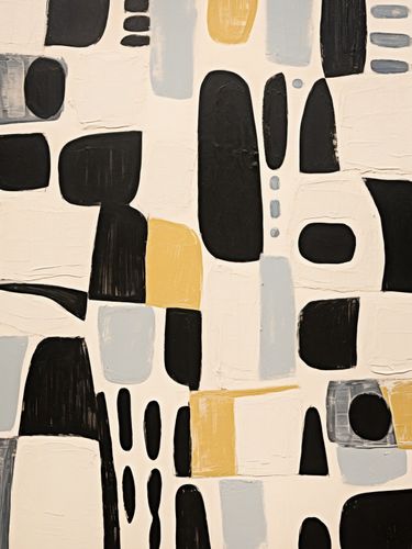 Plakat z serii abstrakcja zatytułowany Geometria Cieni. Złożone formy i kształty układają się w zmysłową taneczną kompozycję, gdzie głębokie czarne figury harmonizują z delikatnymi pastelowymi akcentami. Wzory przypominające odciski palców i delikatne paski dodają tekstury i głębi obrazowi, tworząc uczucie ruchu i dynamiki. Szkicowate tekstury na białym tle dodają nutę autentyczności i ręcznie wykonanej jakości. Idealnie pasuje do minimalistycznych przestrzeni mieszkalnych, galerii sztuki współczesnej oraz awangardowych kawiarni, gdzie design spotyka się z kulturą.