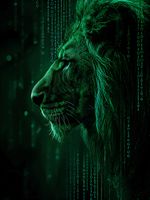 Plakat z serii pop art zatytułowany Kod Siły. Prezentuje majestatyczne oblicze lwa zanurzone w cyfrowym kodzie, który spływa w dół jak deszcz binarny, łącząc siłę i surowość natury z precyzją i logiką technologii. Zielonkawe światło podkreśla kontury i muskulaturę króla zwierząt, a cyfrowe elementy otulają jego profil, sugerując połączenie organicznego i syntetycznego świata. Ten plakat idealnie wpisuje się w nowoczesne, technologiczne przestrzenie, takie jak nowoczesne biura, pokoje gamingowe lub innowacyjne przestrzenie edukacyjne, oferując inspirację i refleksję nad współczesnym związkiem człowieka z technologią.
