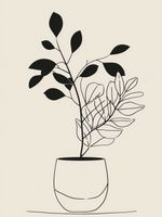 Plakat z serii minimalistyczne zatytułowany Prostota Doniczki.Plakat przedstawia elegancką kompozycję roślin w doniczce, narysowanych za pomocą czystych, prostych linii. Kontrastowe czarne liście na górze są zrównoważone przez delikatny zarys krzewu poniżej. Prosta doniczka o zaokrąglonych kształtach dodaje kompozycji nowoczesnego charakteru.Dzieło to wnoszące do wnętrza powiew świeżości i natury, jest idealnym wyborem dla przestrzeni, które cenią sobie spokój i czyste linie. Doskonale nadaje się do minimalizmu, skandynawskiego stylu mieszkania, biur, czy pokoi o jasnym wystroju, gdzie sztuka ma za zadanie uspokajać i przynosić harmonię.