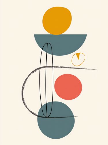 Plakat z serii boho zatytułowany Równe Kompozycje.Plakat ten czerpie z koncepcji równowagi w sztuce, ukazując złożone kształty i kolory. Kulista forma w odcieniu musztardowym spoczywa na większej, niebieskawej powierzchni, a wszystko to jest podparte przez delikatne linie i kształty, które zdają się być w ruchu. Malutkie serce w odcieniu pomarańczowym dodaje delikatnego akcentu, a ciepłe i spokojne kolory komponują się w wizualną poezję. Ten plakat wniesie harmonię i subtelny dynamizm do każdego nowoczesnego wnętrza, pasując do przestrzeni, które cenią sobie prostotę i wyrafinowanie. Jego uniwersalność sprawdzi się w domowych salonach, biurach, a także w przestrzeniach publicznych takich jak kawiarnie czy lobby, gdzie sztuka ma za zadanie uspokajać i inspirować.