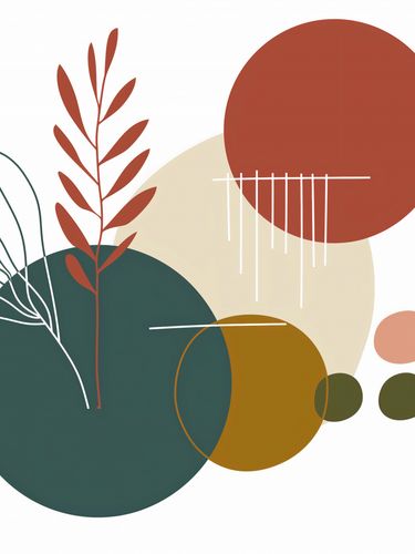 Plakat z serii minimalistyczne zatytułowany Rytm Warkotu. Ta grafika przedstawia stylizowane rośliny w ciepłych odcieniach czerwieni i zieleni, kontrastujące z geometrycznymi kształtami kół w spokojnych barwach beżu, żółci i głębokiej zieleni. Linie pionowe, wydające się być jak deszcz, dodają dynamiki i lekkości kompozycji.Ten plakat będzie się pięknie prezentować w przestrzeniach, które celebrują spokój i naturę. Doskonale wpasuje się w estetykę zen, ekologicznych wnętrz, czy w każdym pomieszczeniu, które ma na celu wprowadzenie elementów natury do domowego otoczenia. Będzie to świetny wybór dla tych, którzy szukają dekoracji ściennych do jasnych, przestronnych pomieszczeń, takich jak salony, jadalnie czy przestrzenie do medytacji.