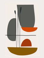 Plakat z serii boho zatytułowany Współgranie to odważne połączenie kształtów i kolorów, gdzie każdy element współgra z innymi, tworząc zbalansowaną całość. Zachowując estetykę mid-century modern, dzieło łączy w sobie ciepłe odcienie brązu, ochry oraz głęboką czerwień z neutralnymi szarościami i czernią. Abstrakcyjne formy przypominające naczynia i rośliny nakładają się na siebie, tworząc iluzję głębi i perspektywy. Delikatne linie nadają kompozycji strukturę i porządek. Ten plakat będzie wyróżniającym się dodatkiem do każdego nowoczesnego wnętrza, idealnie komponując się w przestrzeniach, gdzie dominuje prostota i spokój, jak minimalistyczne salony, stylowe biura czy ciche kąciki do czytania.