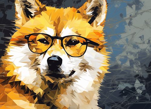 Plakat z serii pop art zatytułowany Intelektualny Psiak - wyrafinowany portret psa wykonany w stylu low poly, który jest artystycznym połączeniem nowoczesnej grafiki i dzikiego ducha natury. Pomarańczowe, białe i czarne wielokąty tworzą wizerunek psa z charakterystycznymi okularami, nadając mu wygląd pełen inteligencji i wyrafinowania. Mroczne tło z abstrakcyjnymi elementami dodaje głębi i kontrastu, wyróżniając głównego bohatera. Ten plakat to idealne odzwierciedlenie połączenia natury z kulturą miejską, świetnie nadające się do dekoracji nowoczesnych przestrzeni takich jak kawiarnie, księgarnie, czy domowe biura osób ceniących unikalny design i przyrodnicze motywy.