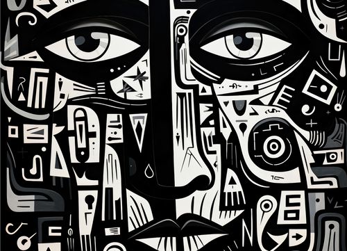 Plakat z serii abstrakcja zatytułowany Labirynt Myśli. Intrygujące oczy spoglądające z głębi obrazu są otoczone złożonymi wzorami i symbolami, które łączą się, tworząc enigmatyczny portret. Czarno-białe barwy kontrastują ze sobą, dodając dziełu intensywności i głębi. Złożoność wzorów symbolizuje skomplikowane myśli i emocje, które kryją się za ludzkim spojrzeniem. Świetnie sprawdzi się w nowoczesnych biurach, galeriach sztuki oraz w przestrzeniach przeznaczonych dla miłośników abstrakcyjnej ekspresji.