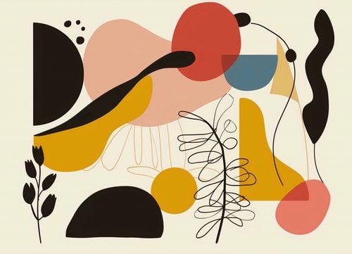 Plakat z serii minimalistyczne zatytułowany Rapsodia Barw. To dynamiczne dzieło sztuki przedstawia zbiór abstrakcyjnych kształtów i linearnych motywów roślinnych na tle o pastelowej palecie barw. Gra form i linii w różnorodnych odcieniach - od głębokiej czerni przez żółcie, beże, róż i stonowany niebieski - przypomina muzyczną kompozycję w wizualnej formie. Ten plakat będzie doskonałym akcentem w nowoczesnych wnętrzach, w których dominują czyste linie i stonowane kolory, ale potrzebują one odrobiny żywych, ciepłych akcentów. Nadaje się do przestrzeni mieszkalnych, takich jak salony czy sypialnie, a także do kreatywnych przestrzeni pracy, takich jak biura i studia projektowe.