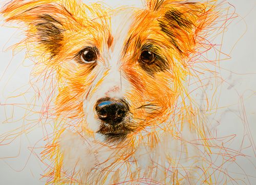 Plakat z serii wnętrza zatytułowany Uroczy Gość przedstawia twarz uroczego psa, stworzoną z setek dynamicznych, kolorowych linii. Jego oczy pełne są życia, a ciepła paleta barw, od żółtego po czerwony, nadaje temu dziełu szczególnego ciepła i energii. Szkicowe kreski nie tylko oddają fakturę futra, ale także wibrującą osobowość psa. Ten plakat idealnie sprawdzi się jako uroczy, artystyczny akcent w przestrzeniach takich jak kawiarnie, kliniki weterynaryjne lub domy miłośników zwierząt, dodając im serdeczności i oryginalności.