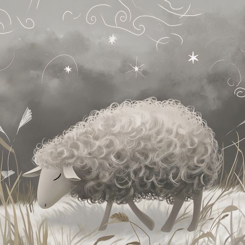 Plakat z serii wnętrza zatytułowany Bujna Owca. Ukazuje on idylliczny obraz owcy o bujnej, puszystej wełnie wśród delikatnej roślinności, z mistycznymi, snującymi się liniami i gwiazdami w tle, tworzącymi atmosferę spokoju i magii. Monochromatyczna paleta barw, z akcentami bieli i szarości, wzmaga uczucie łagodności i odprężenia. Całość kompozycji jest subtelnym przypomnieniem o potrzebie odpoczynku i harmonii z naturą. Plakat ten idealnie nadaje się do przestrzeni zapewniających spokój, takich jak sypialnie, pokoje dla dzieci, miejsca medytacji lub terapeutyczne przestrzenie relaksacyjne. Wprowadzi on do każdego wnętrza element wyciszenia i zachęci do chwil refleksji i spokoju.
