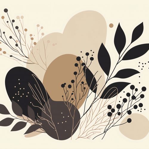 Plakat z serii minimalistyczne zatytułowany HarmonijkaPrzyrody. Ta grafika to estetyczna kompozycja abstrakcyjnych, organicznych kształtów i delikatnych motywów florystycznych w tonacji ziemi. Wykorzystanie różnych odcieni brązu, beżu oraz głębokiej czerni tworzy spokojną, ale i wyrafinowaną paletę barw. Kontrastowe, ciemne elementy florystyczne są pięknie zrównoważone przez jasne tło, nadając całości uczucie lekkości i elegancji.Jest to idealny wybór dla osób, które szukają subtelnego, ale wyrazistego elementu dekoracyjnego do swojego domu lub biura.