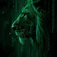 Plakat z serii pop art zatytułowany Kod Siły. Prezentuje majestatyczne oblicze lwa zanurzone w cyfrowym kodzie, który spływa w dół jak deszcz binarny, łącząc siłę i surowość natury z precyzją i logiką technologii. Zielonkawe światło podkreśla kontury i muskulaturę króla zwierząt, a cyfrowe elementy otulają jego profil, sugerując połączenie organicznego i syntetycznego świata. Ten plakat idealnie wpisuje się w nowoczesne, technologiczne przestrzenie, takie jak nowoczesne biura, pokoje gamingowe lub innowacyjne przestrzenie edukacyjne, oferując inspirację i refleksję nad współczesnym związkiem człowieka z technologią.