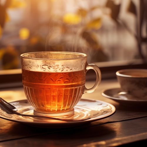 Plakat z serii wnętrza zatytułowany Moment Codzienności. Urokliwy obraz dwóch filiżanek herbaty, z których jedna uchwycona jest w chwili, gdy promienie porannego słońca przenikają przez jej bursztynową zawartość. Ciepłe światło i delikatna para unosząca się nad napojem emanuje atmosferę spokoju i przyjemności z porannego rytuału. Idealny do kuchni lub jadalni, aby dodać uczucie ciepła i domowego komfortu, a także doskonały jako prezent dla każdego miłośnika herbaty lub momentów refleksji.
