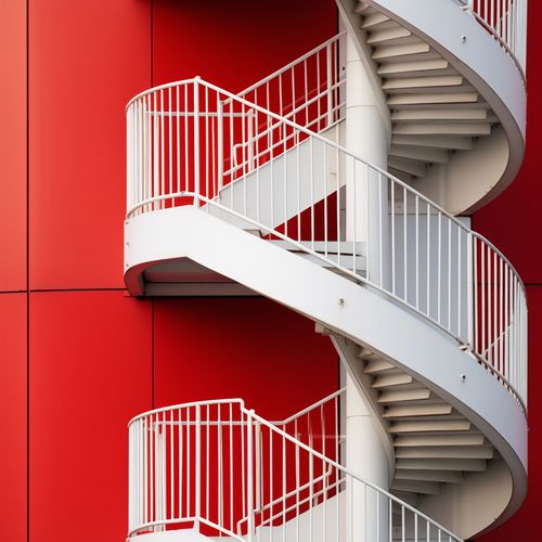 Plakat z serii wnętrza zatytułowany Schody do Niebios. Ten plakat to dynamiczne zestawienie białej, spiralnej klatki schodowej z intensywnie czerwonym tłem ściany budynku. Czyste linie, krzywe i kolorystyczny kontrast tworzą wyrafinowaną kompozycję, która łączy funkcjonalność z estetyką. Idealny dla nowoczesnych przestrzeni komercyjnych i mieszkalnych, które chcą wnieść element współczesnego designu i architektonicznej odwagi, ten plakat jest doskonałym wyborem dla miłośników designu, architektów oraz wszystkich, którzy cenią sobie wyrazistość i mocne, wizualne wrażenie.